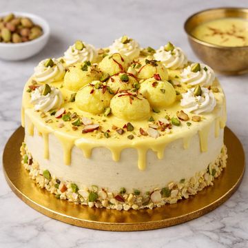 Soft vanilla sponge layered with rich saffron-infused cream and delicate rasmalai flavours, finished with nuts for a classic Indian touch. Add a description about this item