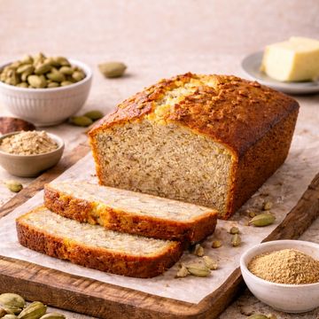 A soft, fragrant loaf cake infused with the warm, aromatic flavor of cardamom and enriched with rich butter. This moist, delicately spiced treat is perfect for those seeking comfort in baked goods and desserts, all freshly made for an elegant experience. Indulging in this loaf is truly a form of sugar therapy, reminiscent of gourmet cookies.